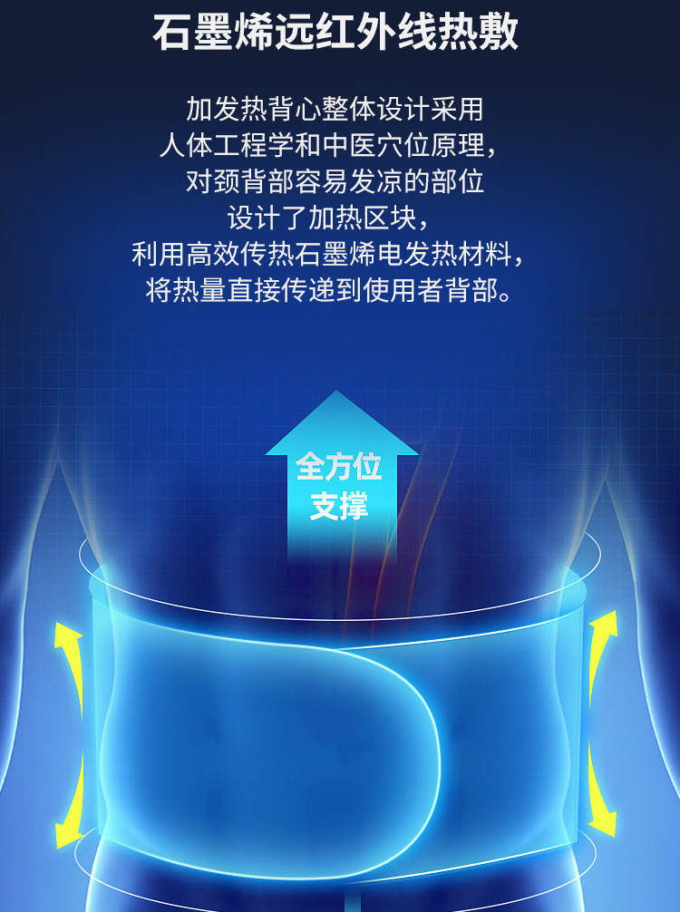 護腰發熱片具備良好的導電導熱性能,均勻發熱,遠紅外發熱能夠促進微循環,對人體有益并達到理療效果。歸壹是石墨烯發熱技術方案解決商。采用安全低壓的設計理念,產品電壓遠低于人體36V安全電壓,更安全,理放心,便攜式充電寶即可有效充電。輕薄柔軟,手感極佳,且加熱性能優良,任意折疊,穿帶用品不二選擇。