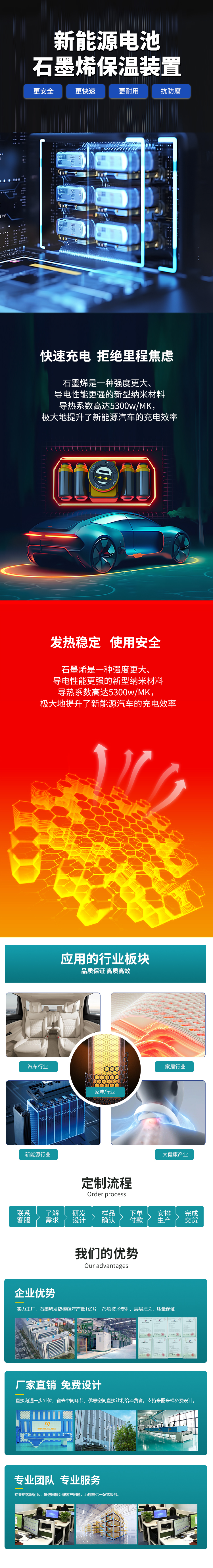 新能源電池柜石墨烯保溫加熱裝置,在極寒的條件下,當電池處在室外環境0℃到負40℃以上時,通過石墨烯的發熱來為電池保溫,使得電池外部環境加熱并保持至5度因此使得電池能正常工作,讓整個電池體系的熱循環更穩定。
